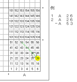 - アルファベットで表される1×2ポイントの四角を,1ポイントを6等分する線で72個に分割します.